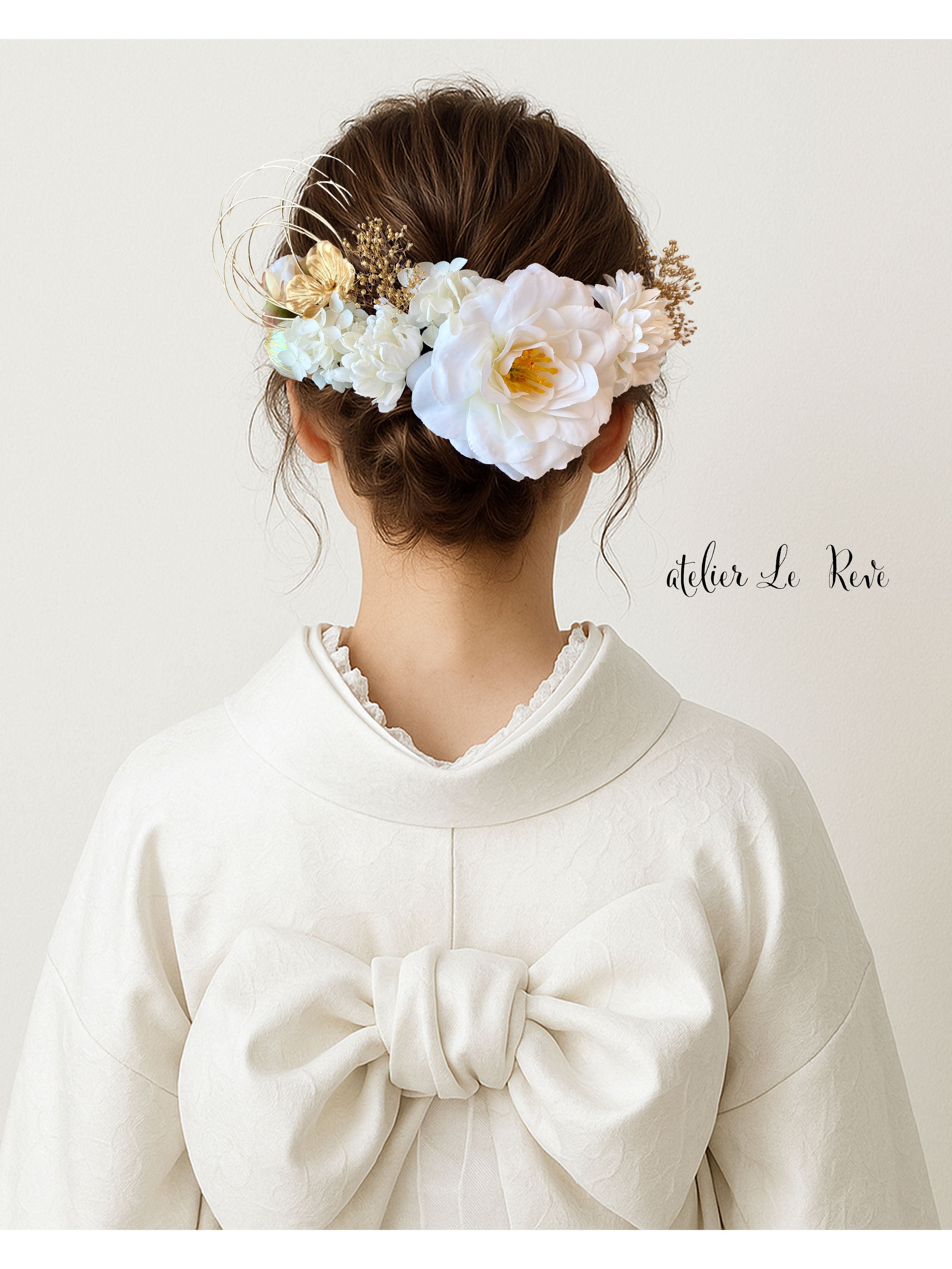 T01 ホワイト椿髪飾り