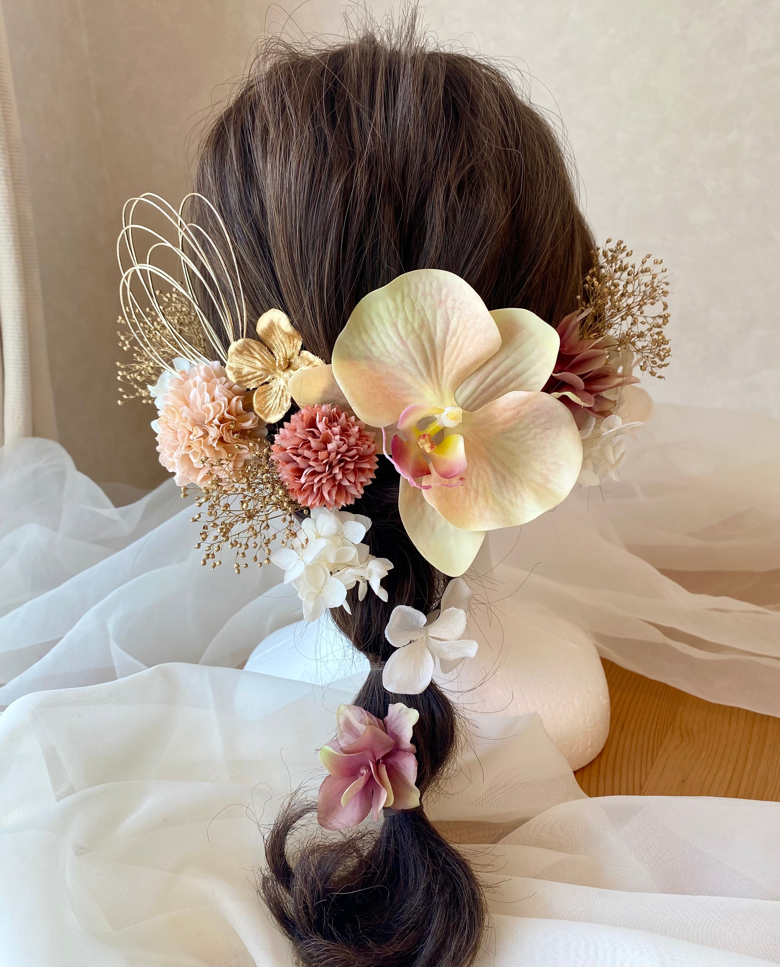 #成人式#成人式髪飾り#成人式ヘア#振袖髪飾り#卒業式#卒業式髪飾り#袴髪飾り#卒業式ヘア#水引#水引髪飾り#水引アレンジ#金箔#結婚式#和婚#ウエディング#ブライダル#白無垢髪飾り#打掛髪飾り#色打掛#着物#浴衣#前撮り#花嫁ヘア#ヘアアクセサリー#プリザーブドフラワー#和装#フォトウエディング#七五三#七五三髪飾り#七五三ヘア#前撮り髪飾り#黄色髪飾り#ヘッドパーツ#ヘッドアクセサリー#胡蝶蘭髪飾り#イエロー胡蝶蘭#イエロー髪飾り#淡色髪飾り
