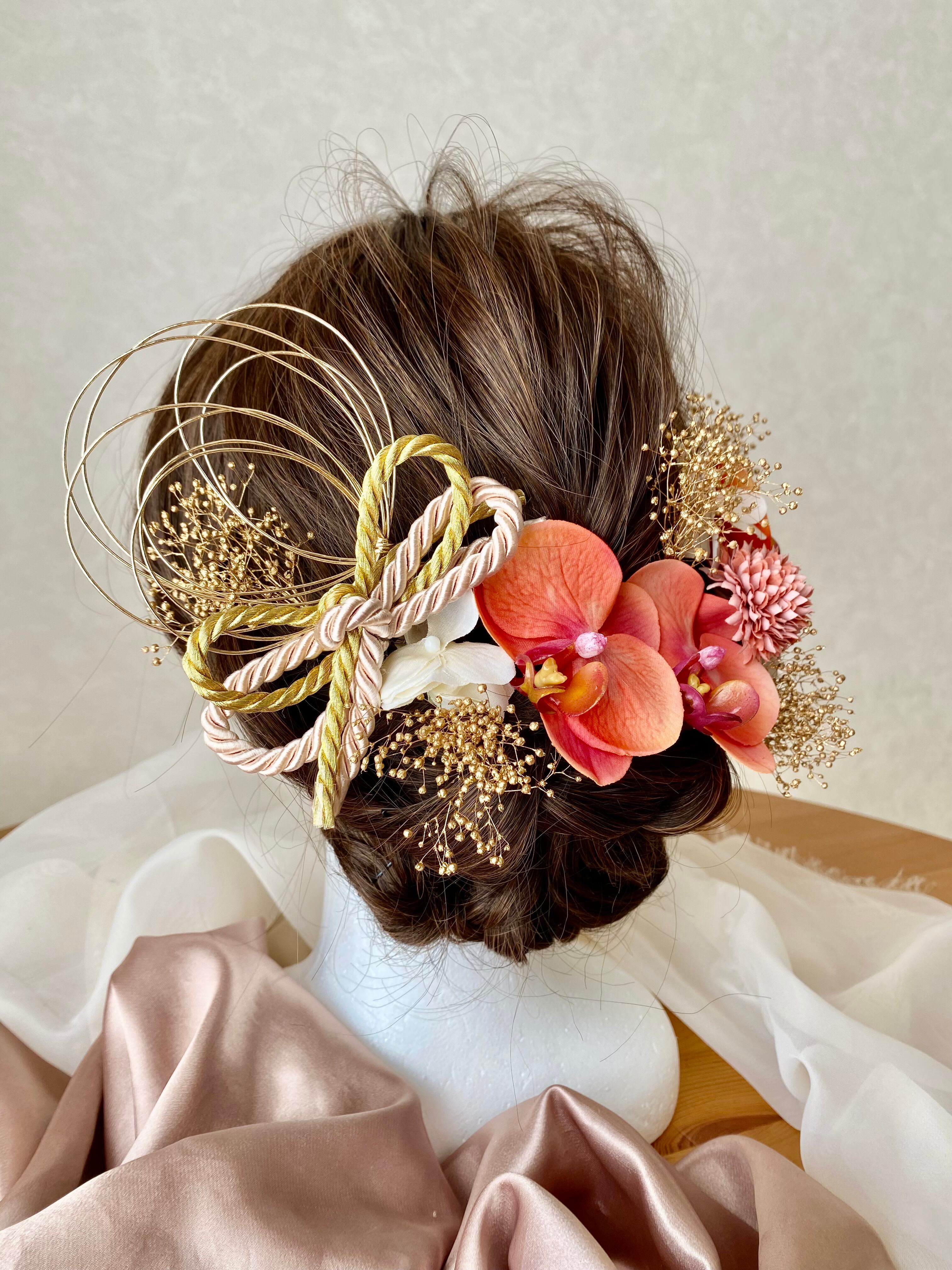 #成人式#成人式髪飾り#成人式ヘア#振袖髪飾り#卒業式#卒業式髪飾り#袴髪飾り#卒業式ヘア#水引#水引髪飾り#水引アレンジ#金箔#結婚式#和婚#ウエディング#ブライダル#白無垢髪飾り#打掛髪飾り#色打掛#着物#浴衣#前撮り#花嫁ヘア#ヘアアクセサリー#プリザーブドフラワー#和装#フォトウエディング#七五三#七五三髪飾り#七五三ヘア#前撮り髪飾り#ヘッドパーツ#ヘッドアクセサリー#胡蝶蘭髪飾り#オレンジ髪飾り