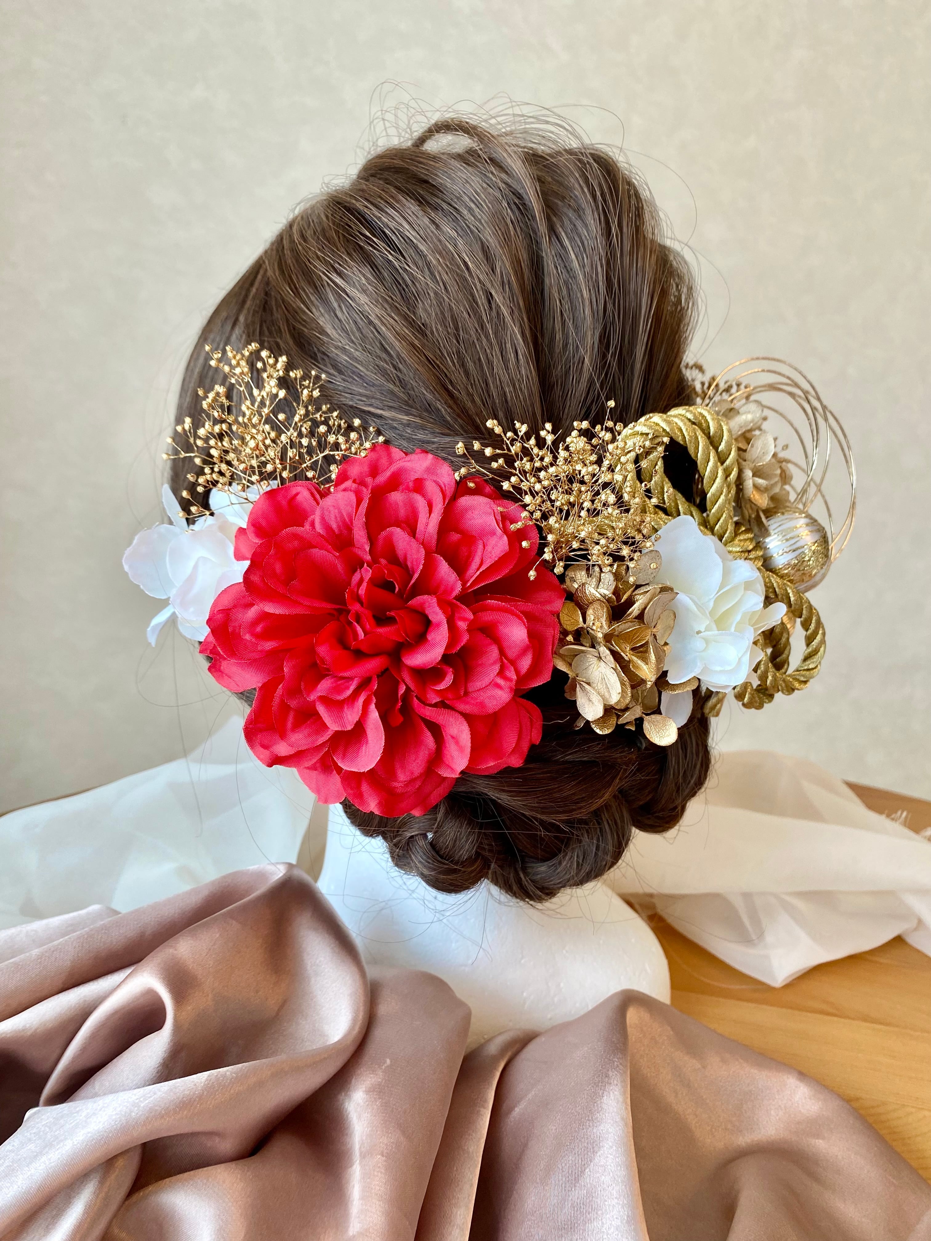#成人式#成人式髪飾り#成人式ヘア#振袖髪飾り#卒業式#卒業式髪飾り#袴髪飾り#卒業式ヘア#水引#水引髪飾り#水引アレンジ#紐リボン#金箔#結婚式#和婚#ウエディング#ブライダル#白無垢髪飾り#打掛髪飾り#色打掛#着物#浴衣#前撮り#花嫁ヘア#ヘアアクセサリー#プリザーブドフラワー#アーティフィシャルフラワー##和装#フォトウエディング#七五三#七五三髪飾り#七五三ヘア#前撮り髪飾り#赤髪飾り#ダリア髪飾り#赤ダリア髪飾り#レッド#大輪ダリア