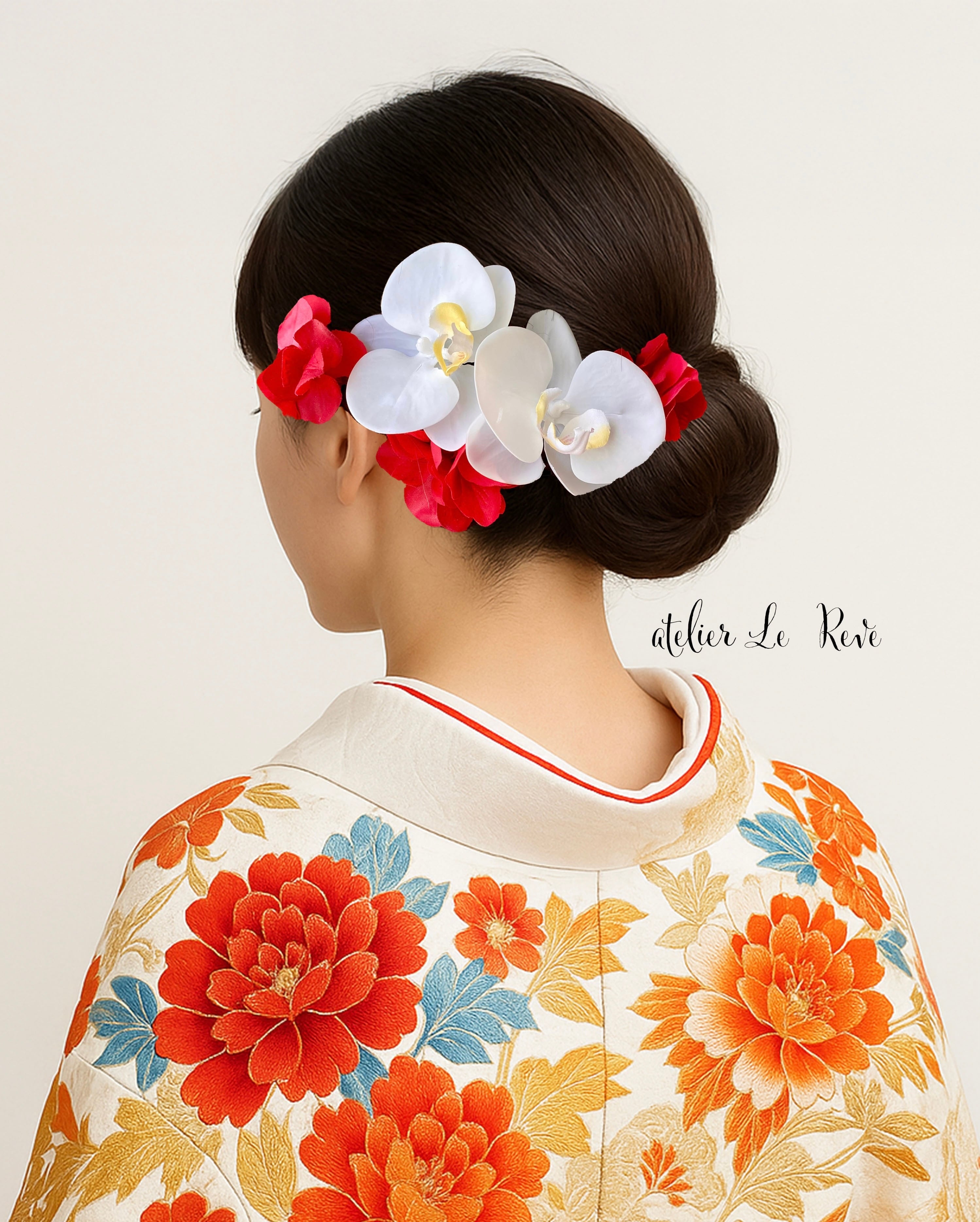 K8 ホワイトレッド胡蝶蘭髪飾り